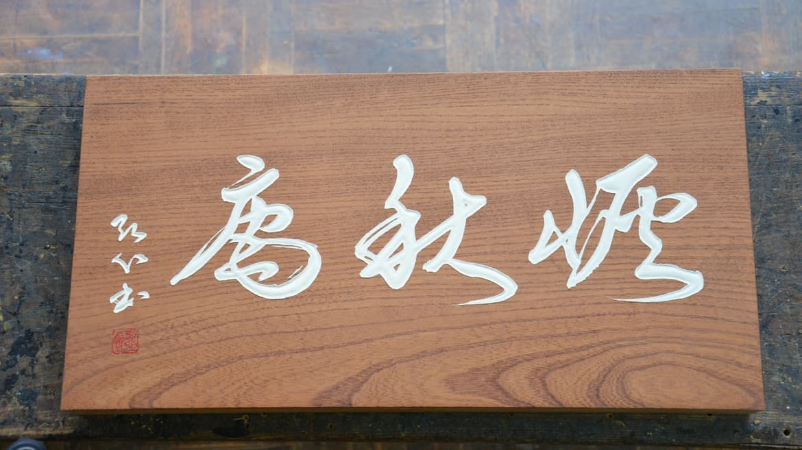 筆文字がかっこいい 重厚感ある木彫り看板 プラスアート株式会社 大阪のオシャレな看板デザイン製作