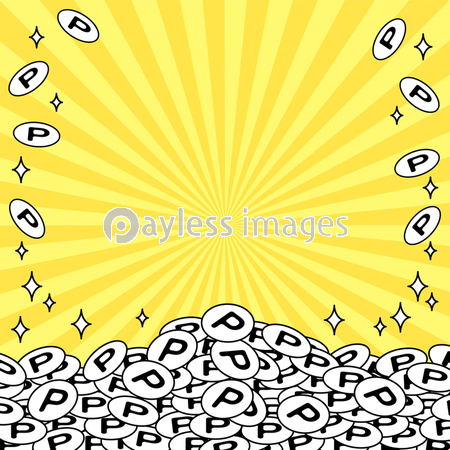 山積みになり輝くポイントコインのフレーム 中央からの集中線 複数バリエーションあり 商用利用可能な写真素材 イラスト 素材ならストックフォトの定額制ペイレスイメージズ